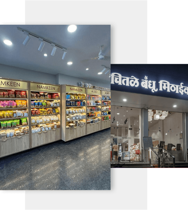 Anchored by the iconic Chitale Bandhu Mithaiwale, our Shreevedang Foods (Sinhgad Road) and Nimish Foods (Wakad) outlets bring the taste of tradition to Pune’s suburbs. With over 2,00,000+ footfalls, we serve a delightful array of mithai and snacks that create cherished moments for every customer.